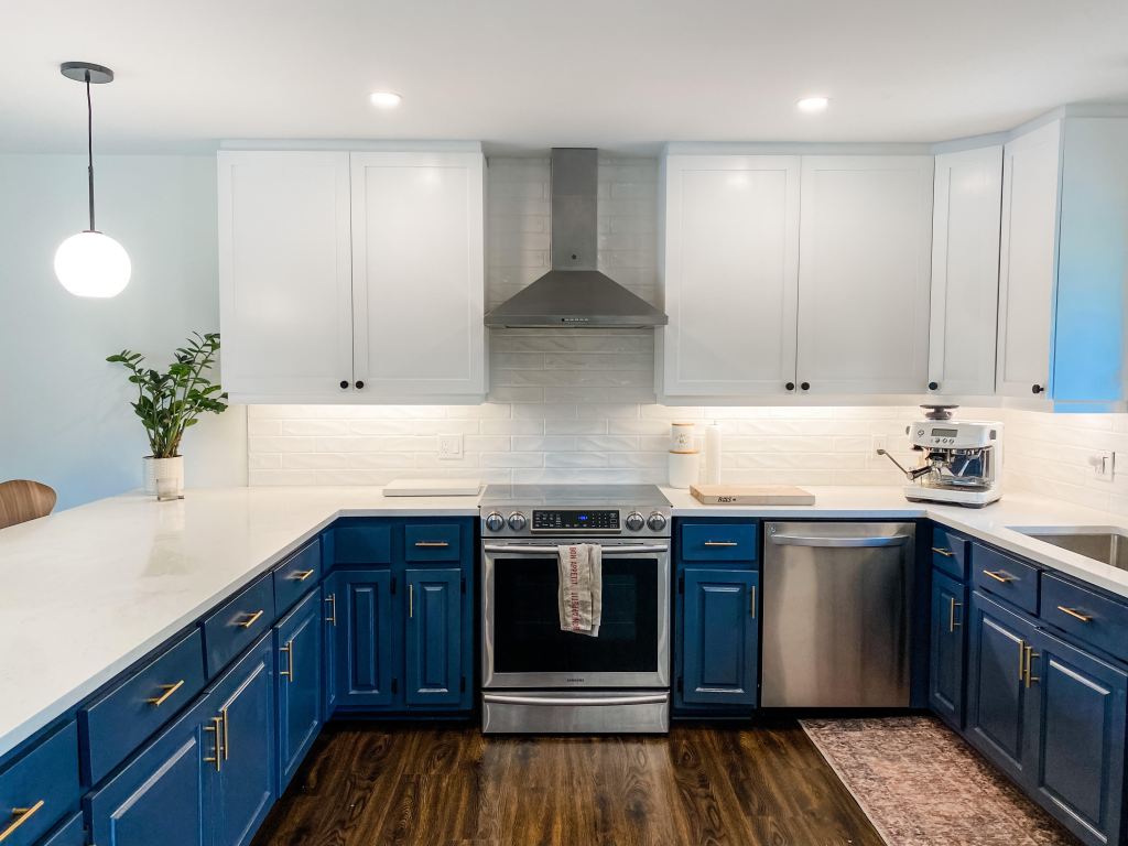 New Upper Cabinets, Ceiling, Pot lights Counters, Backsplash, Hood, & Appliances